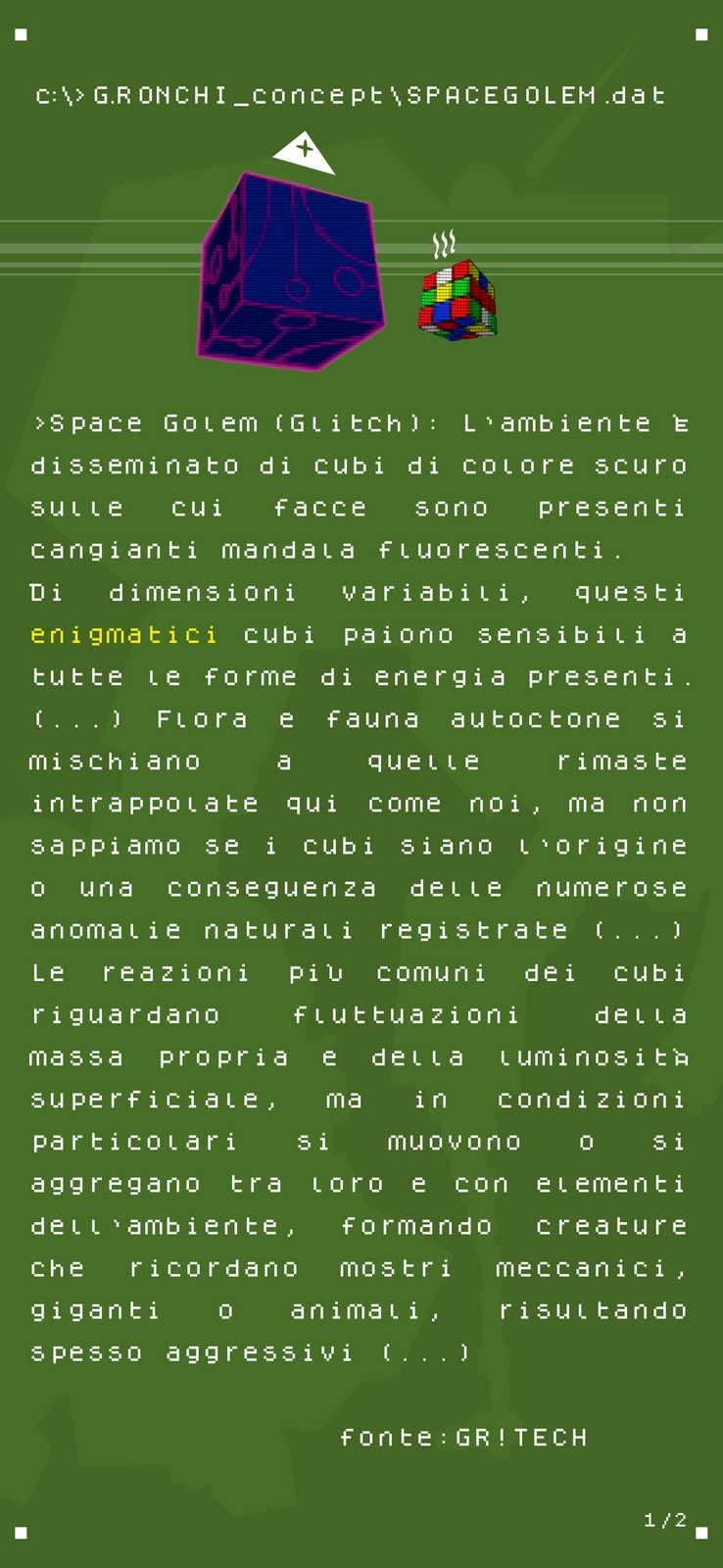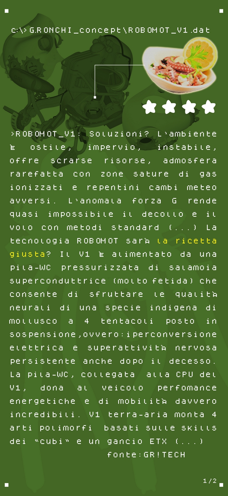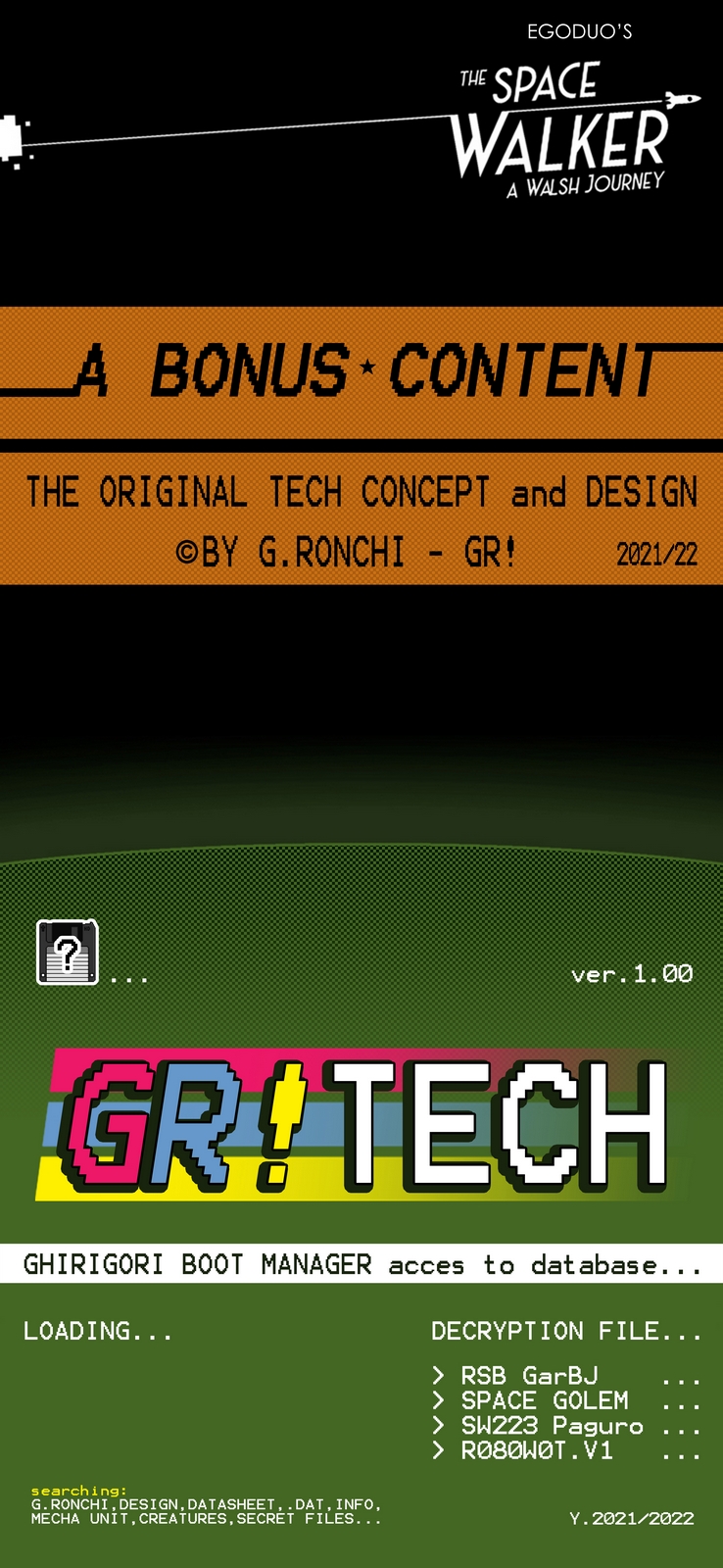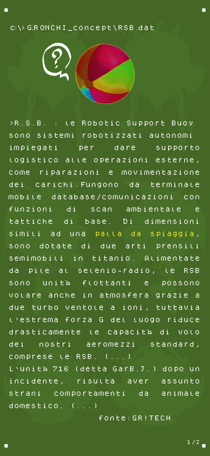 Questa raccolta di file "segreti" composti da testi e disegni, fanno parte dei concept originali realizzati da Giuseppe Ronchi alias GR! per questa strana avventura spaziale.